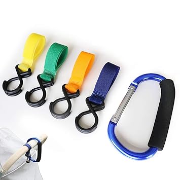 Amazon Com 5pcs Large Carabiner Baby Stroller Hooks Convenient Mommy Handy Hook Assorted Multi Purpose Durable Hanger Clip Organizers For Carrying Bags Diapers Purse Shopping Grocery Baby