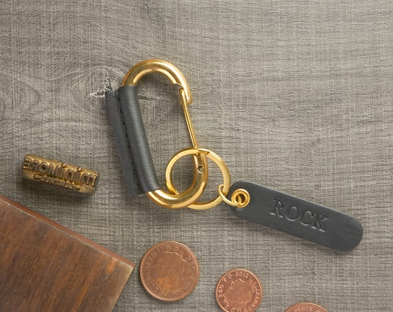 Black Leather Wrapped Carabiner Clip Keychain Brass Keyring Etsy