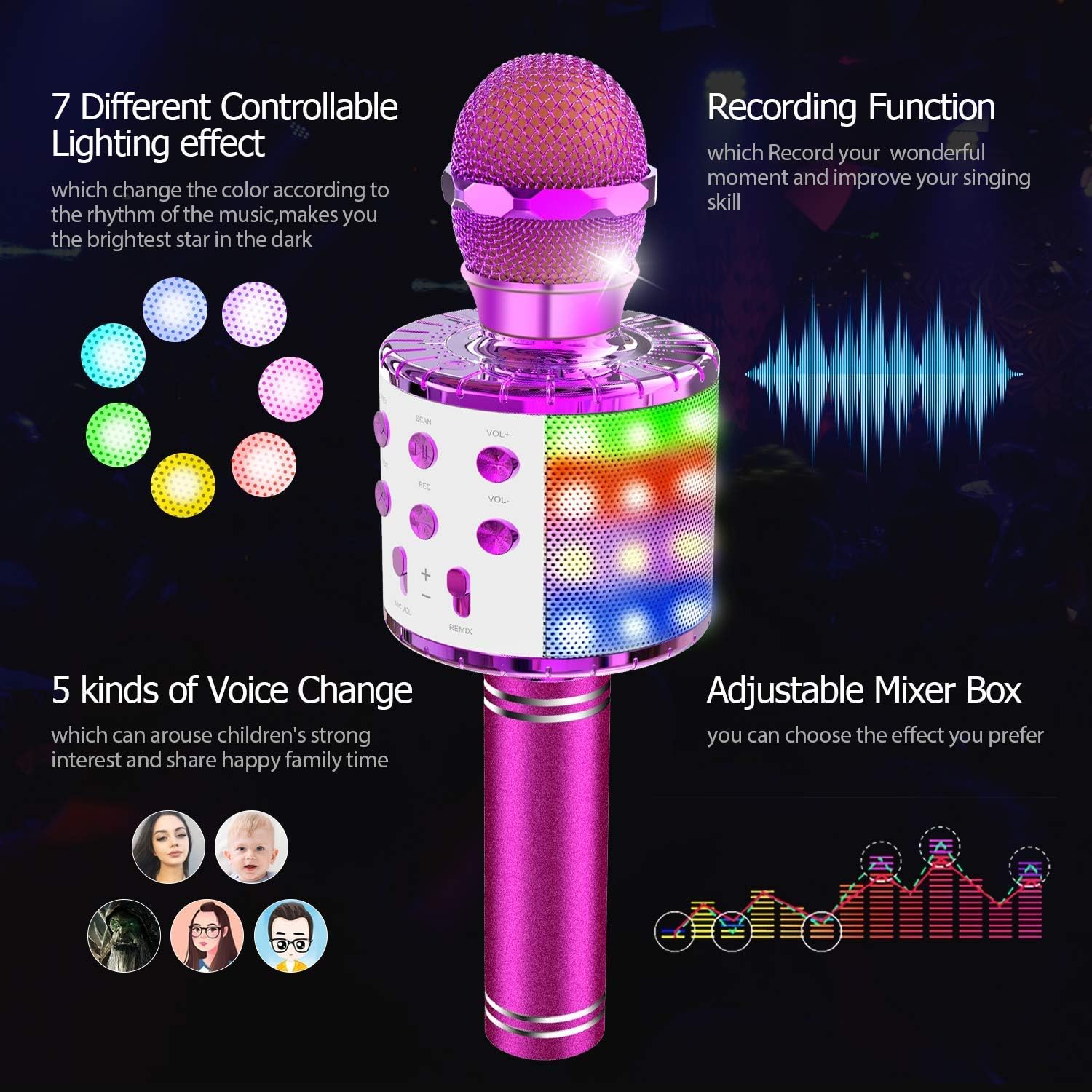 Amazon Com Wireless Bluetooth Karaoke Microphone Machine Tesoky 4 In 1 Upgraded Led Lights Karaoke Machine Mic Hi Fi Microphone Speaker System Home Party Time Best Christmas Birthday Gifts For Kids Adult Musical Instruments